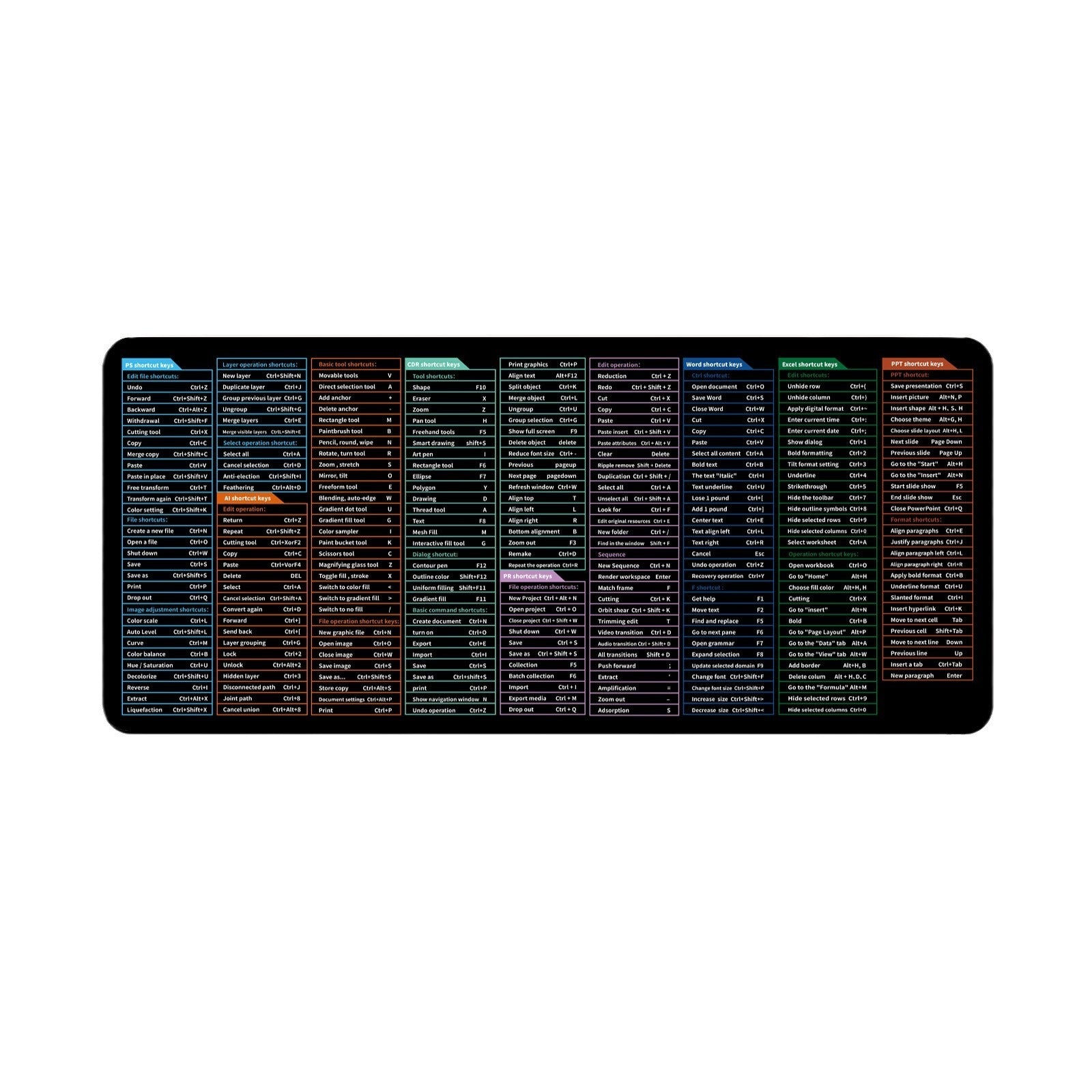 Transform your workspace with our Super Large Stain-Resistant Office Mouse Mat, designed specifically for efficiency and convenience. Featuring a full English keyboard shortcut layout, this mouse pad not only enhances your productivity but also adds a touch of style to your desk.
